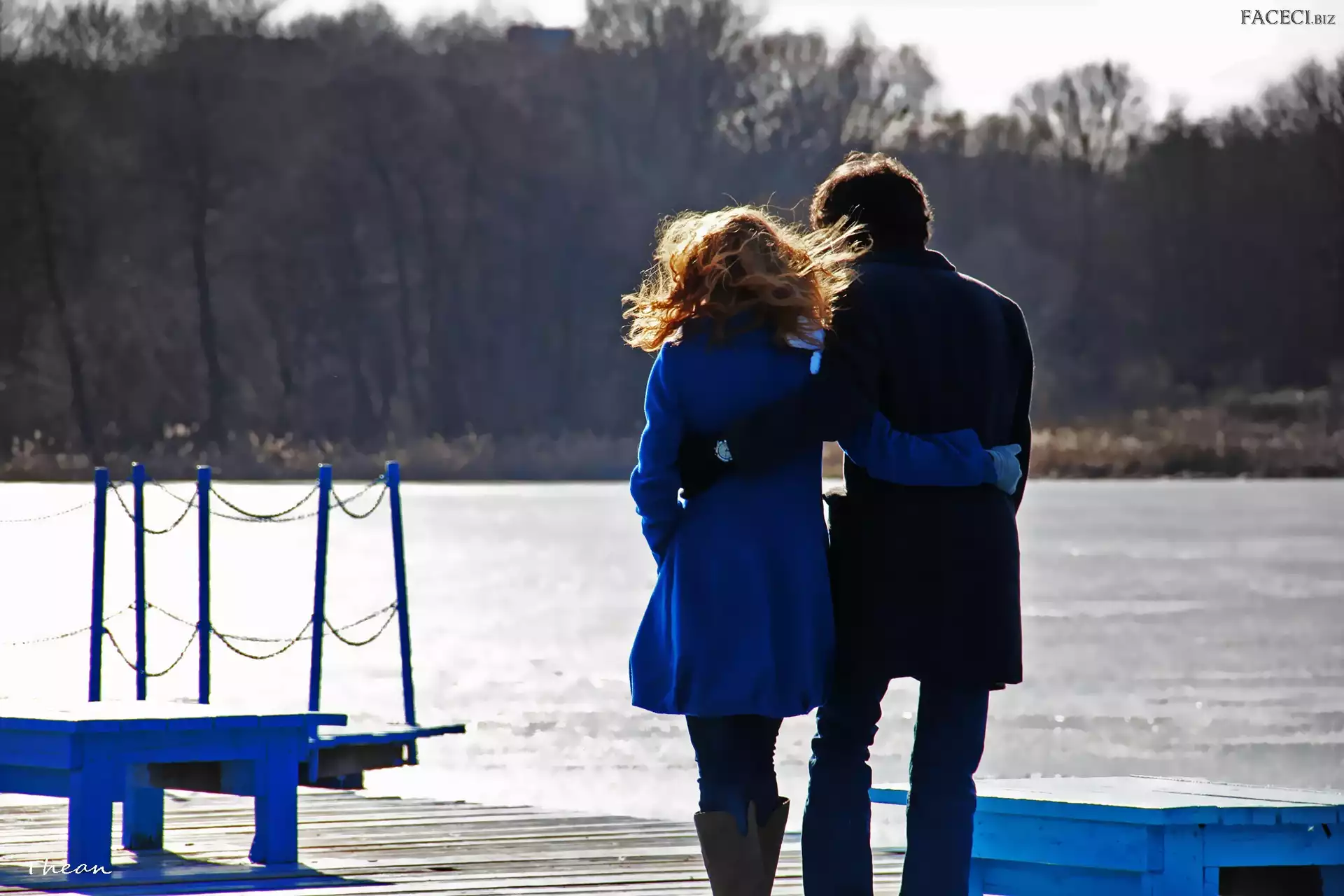 Mężczyzna, Jezioro, Kobieta, Molo - faceci.biz